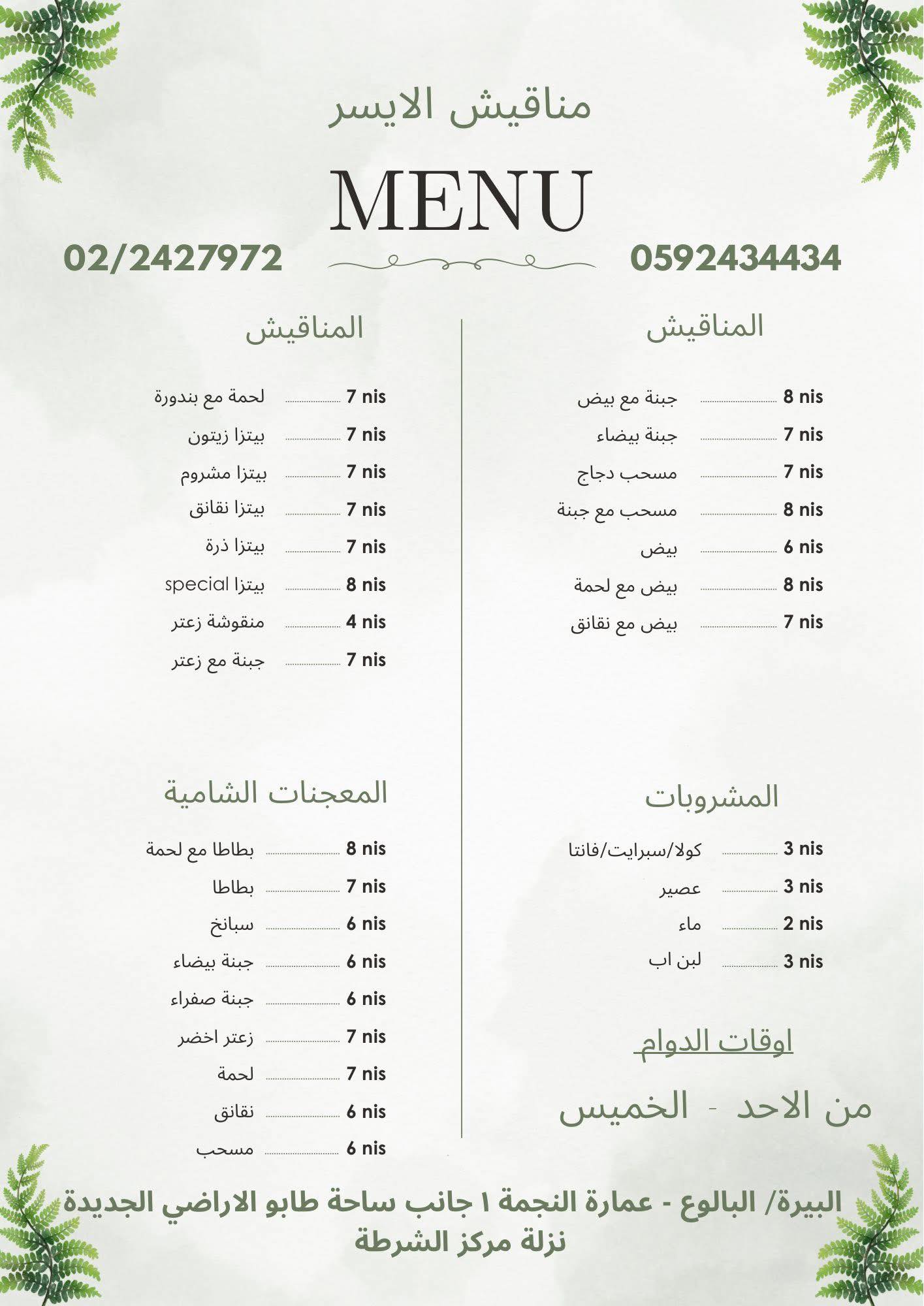 📍فرع ام الشرايط: مقابل ديوان الموظفين 📍فرع الارسال: خلف ماكس مار 📍فرع الطيرة: شارع دمشق خلف سرية رام الله 📍 فرع أريحا - دوار المحكمة 📍فرع وسط البلد - عمارة أمية، مقابل البنك العربي